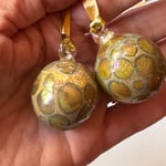 The last remaining baubles in this honey colour. A rich ivory base colour with pools of honey semi lustre colour.